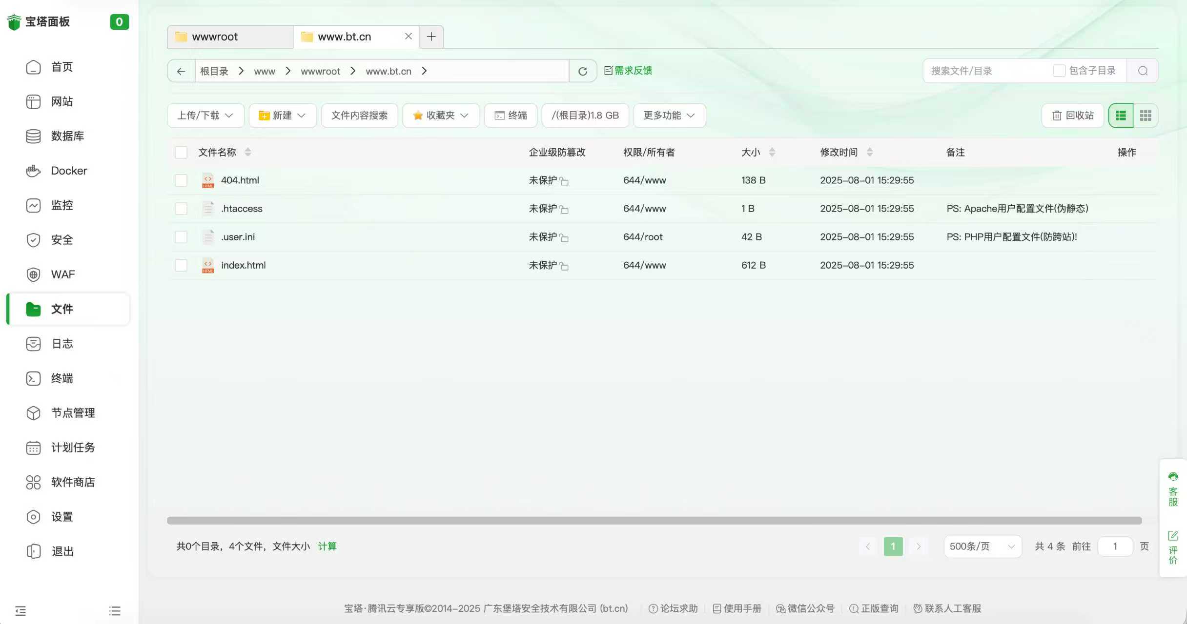 宝塔面板集成了一键部署LAMP/LNMP/Tomcat/Node.js环境,通过web端可视化操作,优化了建站流程,提供安全管理、计划任务、文件管理以及软件管理等功能。官方专业运维技术提供服务。注于服务器运维效率及运维安全领域,持续更新维护8年,值得信赖,遇到问题请咨询客服https://www.bt.cn/new/wechat_customer
